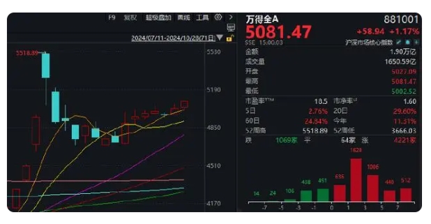 但如果参考万得全A的走势,情况其实更加乐观——至少直至今日,市场仍在稳步向上运行。
